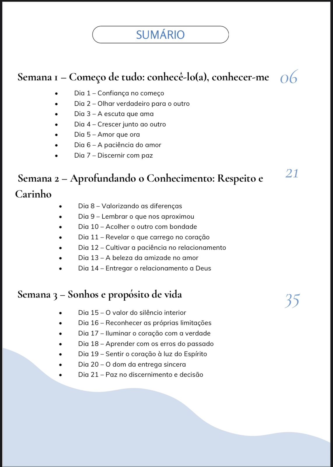 Um itinerário pensado para quem está vivendo o tempo da conversa e discernimento.